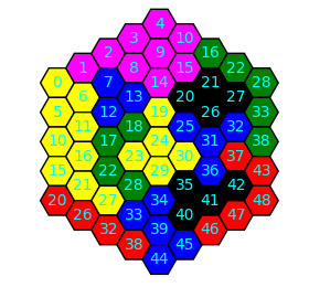 There is this quite hard hexagonal puzzle with 14 pieces that I’ve been toying around with my kids. The goal is to fit all the pieces into one big hexagon shape: