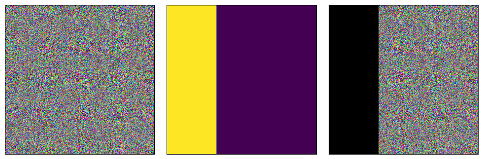 _ = plot_pil_images([ToPILImage()(b.float()), ToPILImage()(a), ToPILImage()(a.masked_fill_(b, 0))])